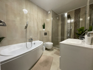 A lakás egy biztonságos körbekerített lakóparkban található, ahová csak a lakók és vendégeik járhatnak be.