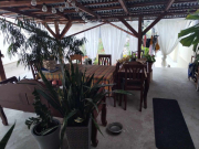 A második rész egy pihenőkert ahol nyársaló,fedett kiülő és egy 25 m2-es faház található.