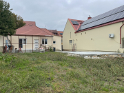 A telken a 2 beállós garázs helye, és bejárat ki van betonozva, a kapu 2 szárnyú elektromos, nagyobb autóval is kényelmesen használható.