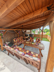 - 60 nm fedett gyerekbiztos terasz, 380 V kiállás, műfű