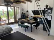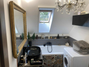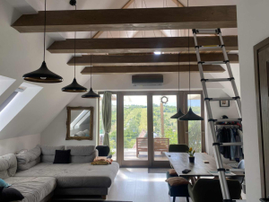 A lakás 2022-ben épült 2 lakásos társasház emeleti lakása. Az ingatlan használati értékét növeli a nagy belmagasságú nappaliban kialakított fekvő galéria, ill. a fürdőszobában, és külön kialakított wc is.