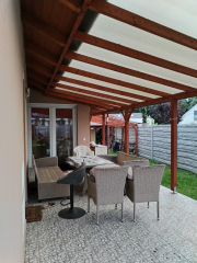 Az udvaron 2 gépkocsinak fedett parkoló, míg a ház előtt további 2 gépkocsinak parkoló lett kialakítva.