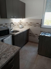 A lakás tartozékai: beépített konyha ( hűtő, fagyasztó, főzőlap, sütő.) A nappaliban étkező sarok, szekrények, kinyitható kanapé ágy, porszívó, mosógép.