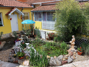 A földszinten 1 db szoba, fürdőszobával, terasszal. 2 db teakonyha - étkezővel és egy közös Wc. A lakáshoz tartozik még egy külön bejáratú vendégszoba fürdőszobával és terasszal, valamint egy kazánház.