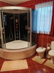 Egyáltalán nincs hiány további helykényelemben: a tetőtérben két tágas szoba, saját fürdőszobával és toalettel, valamint egy külön előtér található. A fedett terasz alatti rész pihenésre szolgál, nyolc férőhelyes SZAUNA és további zuhanyzó, toalett, tároló és pince biztosítja a kényelmet.
