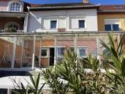 Fszt: konyha-étkező, nappali- terasz kapcsolattal. 1 garázs, utcafrontról is elérhető szoba/iroda.