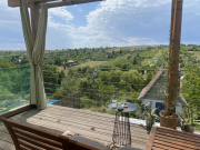 Egerben a Hajdúhegyen forgalommentes zöldövezeti utcában, örök panorámás, saját kertes 1. emeleti, nagy teraszos nappali+3 szobás, gardróbos, kitűnő elosztású családi lakás, saját 320 m2-es telekrésszel, 2 autó számára saját parkolóval eladó.