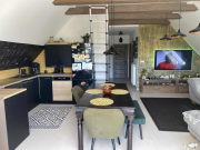 A lakás 2022-ben épült 2 lakásos társasház emeleti lakása. Az ingatlan használati értékét növeli a nagy belmagasságú nappaliban kialakított fekvő galéria, ill. a fürdőszobában, és külön kialakított wc is.